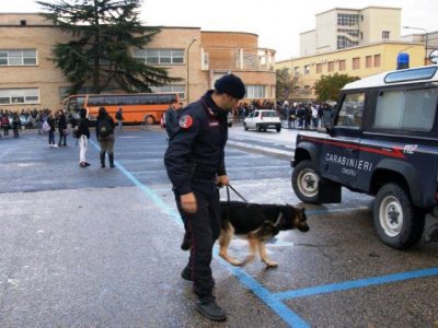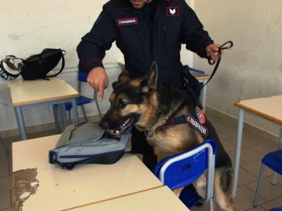 Nuovo blitz dei cani antidroga nelle scuole superiori di Loreto. Nel corso di un servizio mirato, i carabinieri della stazione lauretana insieme ai colleghi del Nucleo cinofili di Pesaro, stamattina hanno operato un controllo a sorpresa e posti di controllo per gli studenti prima dell’entrata in classe all’istituto Einstein-Nebbia. Grazie alla collaborazione del dirigente scolastico, Anita, un pastore tedesco dal fiuto infallibile con il suo militare addestratore, è entrata anche in alcune aule dell’Alberghiero-Ragioneria.