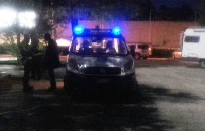 Gli agenti della Polizia locale di Osimo durante il controllo in via Olimpia