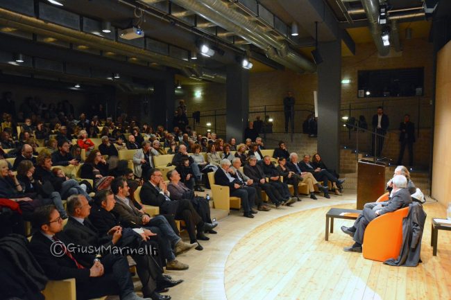 Ad aprire la serata, il sindaco di Ancona Valeria Mancinelli, l’assessore alla Cultura Paolo Marasca, il presidente dell’Autorità di sistema portuale Rodolfo Giampieri. «La realizzazione della fontana è un ulteriore tassello di quel percorso che abbiamo intrapreso per restituire il porto alla città e le emozioni che esso sa dare – ha affermato il presidente Giampieri -. Abbiamo deciso con coraggio, dimostrando voglia di fare, insieme con l’amministrazione comunale, l’apertura di una parte del porto storico due anni fa che ora si arricchisce di qualità, arte, bellezza». Presenti al Ridotto delle Muse, la Giunta comunale quasi al completo, l’assessore al Porto Ida Simonella, quello all’Urbanistica Paolo Manarini, al Welfare Emma Capogrossi, il consigliere di Cariverona, Giampaolo Giampaoli.