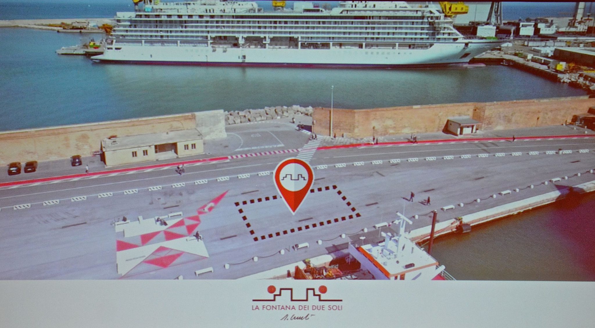 Il simbolo della Fontana dei due soli che sorgerà al Porto Antico