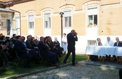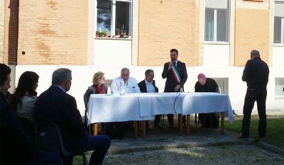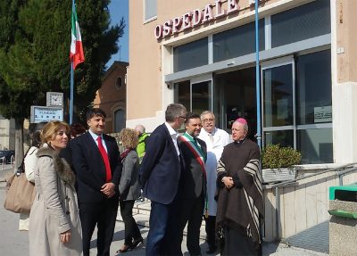 Le autorità davanti all’ospedale Santa Casa di Loreto