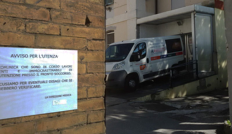Lavori al pavimento del pronto soccorso, il furgone della ditta incaricata sulla rampa d’ingresso delle ambulanze