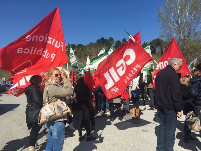 La Cgil dichiara un’adesione superiore al 70% alla giornata di sciopero e circa 150 manifestanti al presidio davanti alla Residenza dorica. Si tratta degli addetti alle Rsa (residenze sanitarie assistite) per anziani che, nella provincia di Ancona, sono circa 247 e fanno riferimento ai gruppi Santo Stefano (Residenza dorica, Anni Azzurri) e Zaffiro. “Non è solo una rivendicazione economica ma la richiesta di un riconoscimento per il delicato lavoro svolto ogni giorno da queste lavoratrici e lavoratori che si prendono cura dei nostri anziani” dichiara Stefania Ragnetti, segretaria generale Fp Cgil Ancona.