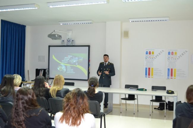 Oggi al liceo Classico Giulio Perticari di Senigallia, si è tenuto un incontro delle Fiamme Gialle con gli studenti per parlare di cultura della legalità economica nell’ambito della quinta edizione del progetto. È un’iniziativa che parte dal protocollo d’intesa tra il Comando generale della guardia di finanza ed il ministero dell’Istruzione, dell’Università e della Ricerca finalizzata a promuovere, nell’ambito dell’insegnamento “cittadinanza e cocstituzione” un programma di attività a favore degli studenti della scuola primaria e secondaria.
