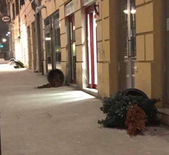 Le fioriere abbattute in corso Garibaldi in uno degli ultimi raid