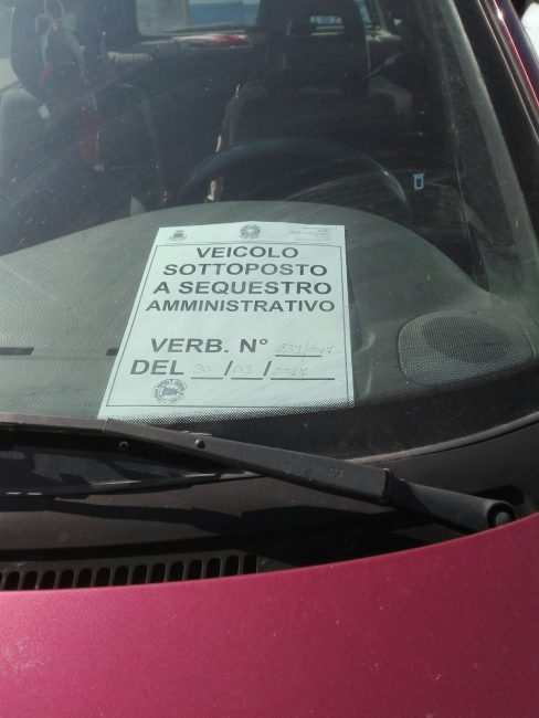 L’auto sequestrata oggi dai vigili urbani di Osimo perché senza assicurazione