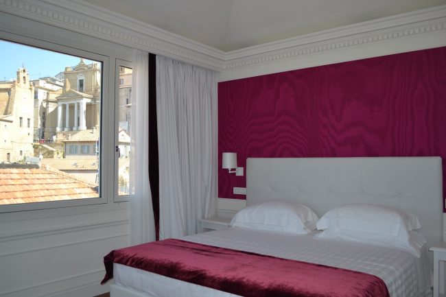 Trentanove le camere, tra Classic, Comfort, Executive, Family Room alle quali si aggiungono le quattro suite a tema. La Wine suite, ispirata ai vigneti del territorio, dove si combinano lusso ed eleganza. La junior suite Teatro, la più piccola delle quattro con i suoi 34 metri quadrati, con le pareti a richiamare la vita del teatro, le Muse a pochi passi. Ancora: la junior suite Benessere, dedicata al fitness ed al relax, con il tapis roulant interno, doccia emozionale, vasca idromassaggio e bagno turco in camera. Ed infine, la suite Terrazza – la più grande, con i suoi 50 metri quadrati – nella quale è possibile dividere l’area lavoro da quella relax. Il nome dice già tutto, dal suo terrazzo è possibile abbracciare l’intero golfo di Ancona. Il tutto per un range di prezzo che va dai 180 ai 500 euro a notte. Dai 95 euro ai 130 invece per le altre camere.