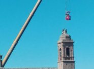 SANTA MARIA NUOVA – Una squadra dei vigili del fuoco ha lavorato ad una altezza di 35 metri da terra per tirare giù il simbolo sacro che dopo la scossa del 30 novembre era caduto sul tetto dell’edificio sacro