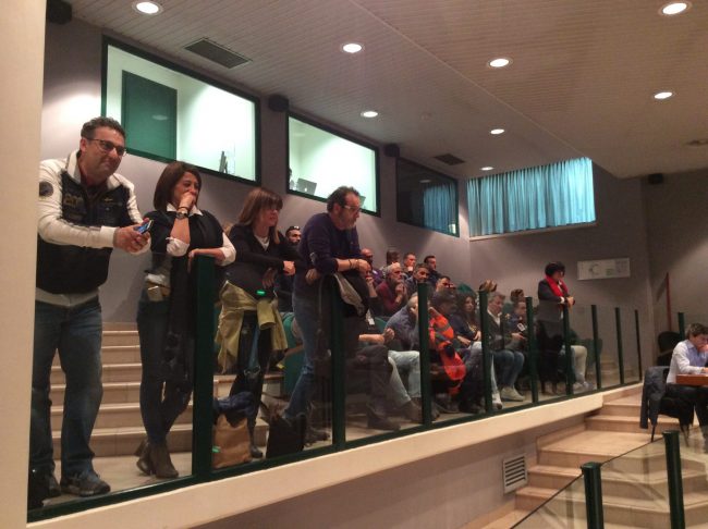 I lavoratori di Aerdorica sugli spalti dell’aula del Consiglio regionale mentre è in corso la discussione sul salvataggio dell’aeroporto