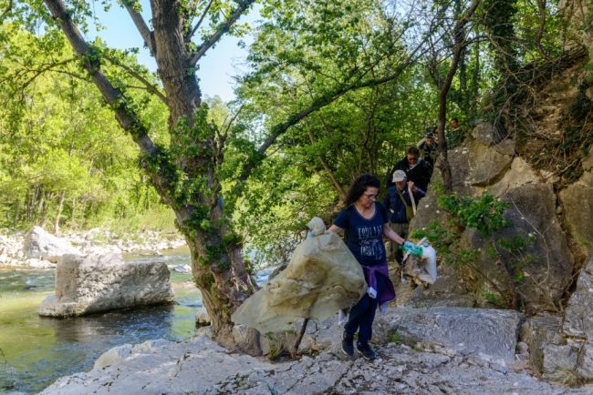 La raccolta dei rifiuti lungo il letto del fiume Esino