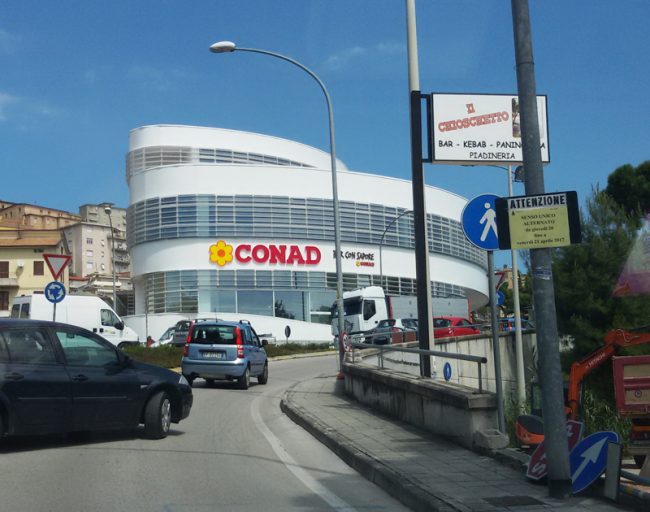 In attesa di conoscere l’esito dell’udienza per la sospensiva cautelare discussa oggi in Consiglio di Stato a Roma, procedono a ritmi frenetici i lavori per completare il cantiere del nuovo centro commerciale all’ex consorzio agrario di Osimo. L’insegna del supermercato Conad è stata montata ieri sulla facciata dell’edificio mentre oggi gli operai hanno provveduto a riasfaltare il tratto di via Montefanese compreso tra le due rotatorie antistanti il polo commerciale. Nelle ore di punta si  sono creati ingorghi di traffico anche in via Molino Mensa e in via Ungheria. I giudici capitolini dovrebbero pronunciarsi domani con il deposito dell’ordinanza che stabilirà se anche il nuovo Conad potrà essere inaugurato il prossimo 27 aprile (leggi l’articolo).