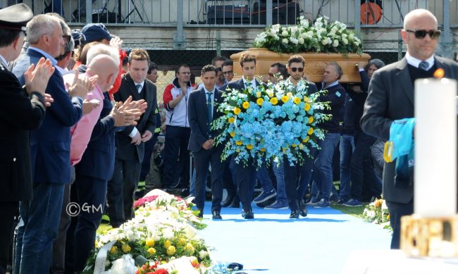 Michele ha vinto tante e tante volte. “Con Nibali, che è qui, hai avuto tante sfide. C’era talmente tanta rivalità tra voi due che poi sei diventato un suo gregario. – ha rammentato Cassani al microfono vicino all’altare- La gente non lo sa che essere gregari è un privilegio perché lavori anche per gli altri. Te lo dice uno che l’ha fatto per una vita. E’ bello quando metti la tua generosità al servizio degli altri. Ma la cosa incredibile è tu che sei morto da capitano, come lo sei sempre stato. Nel mio pc ho il filmato di quando tu, l’anno scorso, hai messo il piede a terra e hai aspettato Nibali sul Colle dell’Agnello. E pensa che Valverde per colpa tua non è riuscito a vincere per pochi secondi il Giro. Lui che due giorni fa ha vinto la Liegi Bastogne Liegi, la prima cosa che ha pensato dopo la vittoria ha pensato a te. Ha pianto per te perché gli mancavi. E manchi a tutti”.