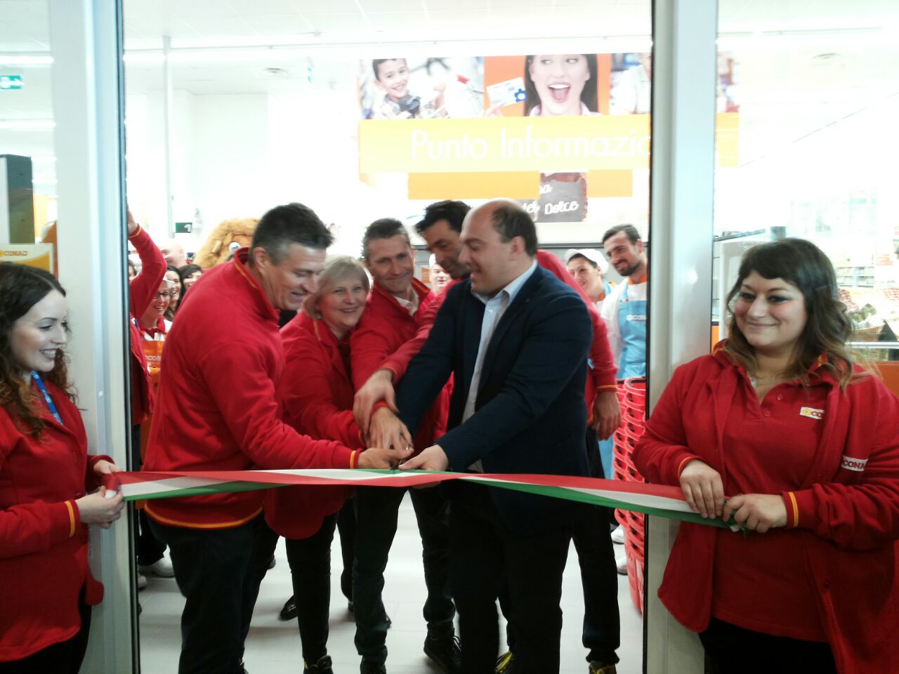 Inaugurato stamattina alle 9 il nuovo Conad di Osimo, in via Montefanese. Il nastro è stato tagliato dal sindaco, Simone Pugnaloni poi il punto vendita è stato benedetto dal cardinale Edoardo Menichelli, arcivescovo di Ancona-Osimo. Il supermercato, con annesso bar “Con Sapore”, occupa una cinquantina di persone, la maggior parte delle quali di nuova assunzione. La gestione del negozio e del bar è affidata alla società Palm, dei quattro soci della provincia di Ancona, Manuela e Luca Eusebi, Pino Carmenati e Andrea Benedettelli, titolari anche del Conad City di Ancona di Corso Carlo Alberto. All’opening stamattina era presente anche Luca Panzavolta, l’amministratore delegato di Commercianti Indipendenti Associati (Conad), il costruttore e proprietario dell’immobile, l’imprendtore Alberto Simonetti (Fr. Simonetti) e il presidente della delegazione Confcommercio, Renato Frontini.