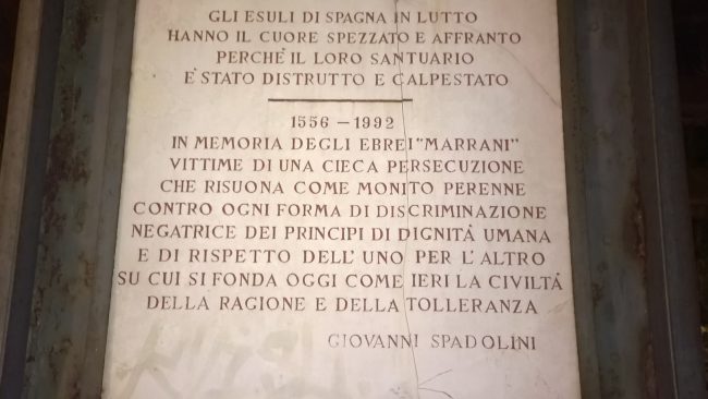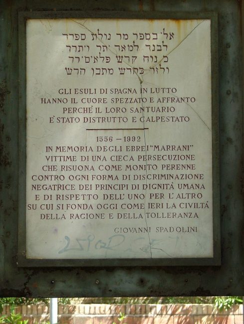 Ma chi erano i marrani? In spagnolo “marranos”, porco, termine che a sua volta deriva probabilmente dall’arabo “mahram”, che significa “cosa proibita”, erano ebrei sefarditi (della penisola Iberica) che fin dal tardo Medioevo vennero costretti, il più delle volte con la forza e le minacce, a rinnegare la loro fede e ad abbracciare quella in Cristo. Già perseguitati nel XIV secolo, in Spagna divennero veri e propri nemici pubblici – qualora rifiutassero una reale e fattiva conversione – all’indomani dell’istituzione dell’Inquisizione (1481). La persecuzione dei marrani si intensificò nel XVI secolo a seguito della nascita dell’Inquisizione anche in Portogallo, dove i primi furono espulsi già nel 1496. Ad Ancona,nel 1556, vivevano ben 3.000 ebrei marrani (portoghesi, secondo alcune fonti”, “esuli di Spagna”, secondo la lapide di piazza Malatesta). L’anno prima papa Paolo IV aveva ordinato che tutti i marrani venissero in ogni caso imprigionati. Sessanta di quelli anconetani, che riconobbero la fede cattolica come penitenti, vennero deportati a Malta o condannati a remare nelle navi; 24, che non vollero “riconciliarsi” e restarono fedeli al ritorno al giudaismo, furono prima strangolati e poi bruciati al rogo nel Campo della Mostra (così si chiamava piazza Malatesta) affollato di gente; quelli che sfuggirono all’Inquisizione vennero accolti a Pesaro dal duca di Urbino Guidobaldo II della Rovere. Il porto di Ancona e di conseguenza l’economia della città pagarono un duro prezzo per quella spietata oppressione e brutale esecuzione. I capi, molto influenti, delle comunità ebraiche note per i loro importanti traffici commerciali di vari Paesi, boicottarono lo scalo dorico, e ne decretarono un fermo e generalizzato boicottaggio sotto la regia di Grazia Nasi, una delle donne ebree più ricche del Rinascimento. La parte iniziale della lapide di piazza Malatesta contiene anche una sintetica memoria in ebraico. Si auspica che il suo riposizionamento, una volta restaurata dal Comune, avvenga al più presto. E che inneschi un iter virtuoso per l’approvazione di un piano di restauro delle altre lapidi di significato storico, presenti nel tessuto urbanistico cittadino, che per la maggior parte versano in uno stato pietoso.