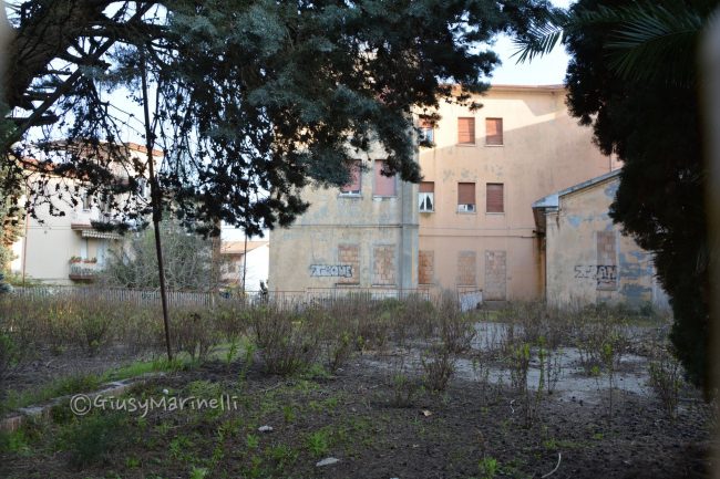 Quello che resta del cortile interno dell’ex scuola materna, foto Giusy Marinelli