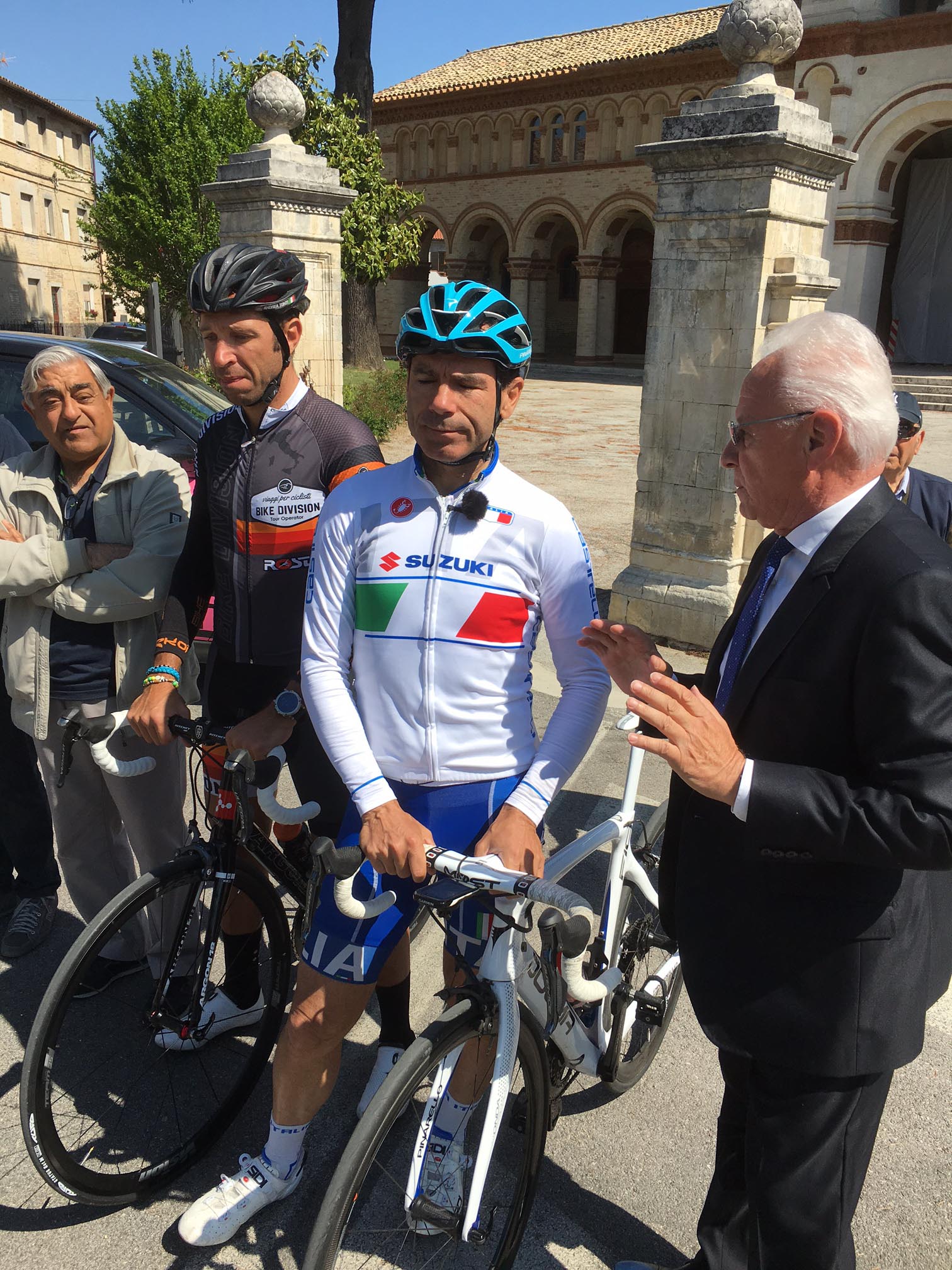 C’è grande fermento ad Osimo per la presentazione della 5° tappa del Giro d’Italia Under 23 in programma domani, lunedì 15 Maggio, alle 17:30, a palazzo Campana. Nella giornata di riposo della carovana impegnata nell’edizione numero cento del Giro, i più importanti protagonisti della corsa saranno presenti nella città senzatesta per il vernissage di presentazione in cui verrà ricordato il compianto Michele Scarponi. Le strade che il prossimo 13 giugno saranno percorse dalle più forti formazioni della categoria under 23, sono state per tanti anni il campo di allenamento dell’aquila di Filottrano. Dopo i saluti del sindaco di Osimo Simone Pugnaloni e di Giorgio Antonelli, presidente del Club Ciclistico Campocavallo, che quest’anno celebra i 50 anni di attività, la storica firma del mondo delle due ruote Marco Pastonesi, per tanti anni alla Gazzetta dello Sport, introdurrà il dibattito con gli ospiti: il presidente della Federazione Ciclistica Italiana Renato Di Rocco, il commissario tecnico della nazionale Davide Cassani, quello dell’Under 23 Marino Amadori ed Ivan Basso, vincitore del Giro d’Italia nel 2006 e 2010.