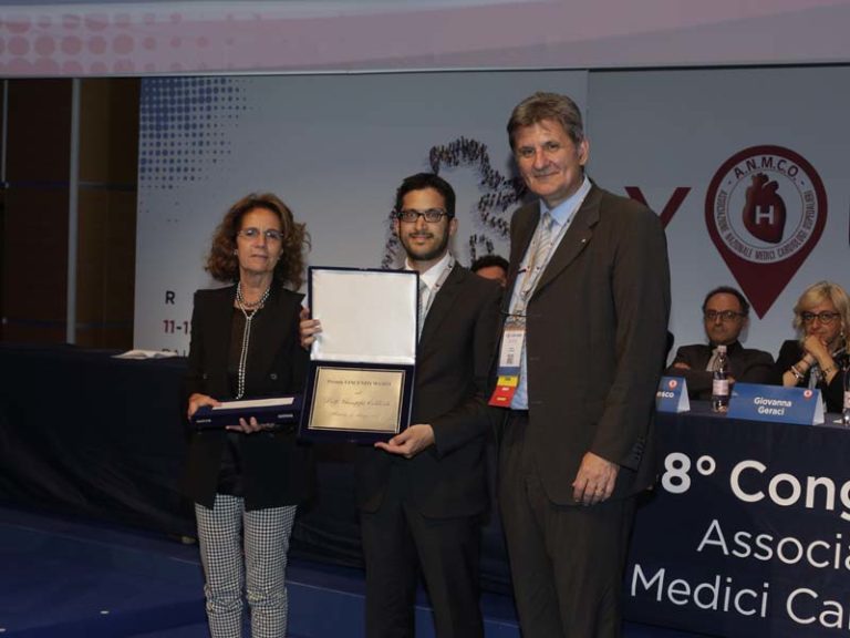 Il prestigioso premio Vincenzo Masini per la migliore comunicazione scientifica per l’anno 2017 è stato assegnato al dottor Giuseppe Ciliberti con l’abstract dal titolo: “Characteristics and prognosis of acute myocardial infarction with non–obstructive coronary arteries (Minoca) according the new ESC criteria”. Il premio è stato consegnato durante il congresso dell’Associazione Nazionale dei Medici Cardiologi Ospedalieri (Anmco) che si è tenuto a Rimini dall’11 al 13 maggio. Il dottor Ciliberti è un Cardiologo e Studente del Dottorato di Ricerca in Scienze Biomediche presso l’Università Politecnica delle Marche, presso la SOD Clinica di Cardiologia e Aritmologia diretta dal Prof. Alessandro Capucci, Azienda Ospedaliero Universitaria Ospedali Riuniti di Ancona. Al congresso erano presenti i medici delle trecento cardiologie attive in Italia che hanno discusso sui problemi relativi ai migliori e più aggiornati strumenti diagnostici e terapeutici per la cura delle malattie cardiovascolari che ancora rappresentano la principale causa di morte nei Paesi industrializzati. Il premio assegnato durante il congresso al ricercatore Giuseppe Ciliberti, arriva da un’associazione storica come l’Anmco che oltre ad essere la più importante società scientifica cardiologica nazionale, vedrà come suo prossimo presidente nazionale dottore Domenico Gabrielli, Direttore dell’Unità Operativa di Cardiologia dell’Ospedale di Fermo “A. Murri”. Questa presidenza “marchigiana” inizia nel migliore dei modi con la vittoria del premio Masini da parte di un giovane ricercatore marchigiano.
