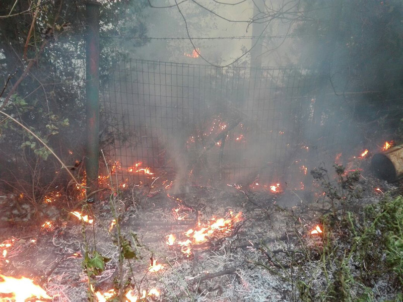 OSIMO - L'allarme è scattato oggi verso le 14.45. Il fuoco ha incenerito 500 mq. di sterpaglie in via Settefinestre a Campocavallo
