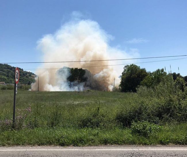 Una nuvola di fumo che poco prima delle 15 ha messo in allarme i residenti per la presenza di fiamme su un campo di sterpaglie, a ridosso tra via Carducci e via del Rosario, poco distante dall’Ipersimply di Villa Musone, a Loreto. Sul posto hanno lavorato per almeno 3 ore i vigili del fuoco di Ancona e Osimo ed è intervenuta anche una pattuglia della polizia locale di Loreto.