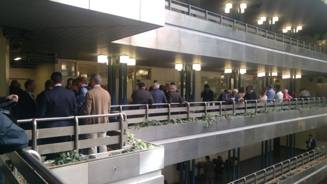 La folla degli avvocati difensori e dei consulenti di parte stamattina in tribunale per l’udienza che ha stabilito una nuova perizia su quanto resta del cavalcavia 167