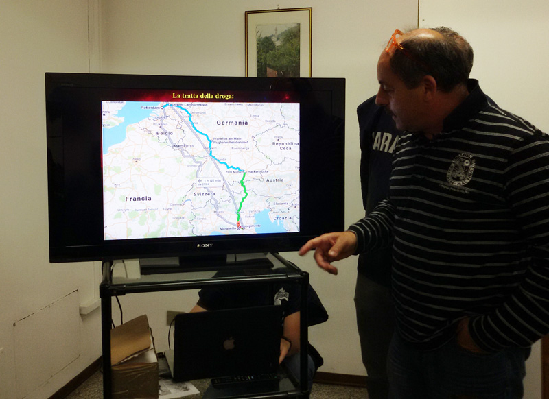 Le indagini stanno continuando per identificare tutti gli spacciatori del quadrilatero della droga proveniente dall’Olanda, una vera e propria holding europea (italo-albanese), seguendo l’itinerario principale: Rotterdam – Modena – Ravenna – Filottrano – Osimo – Recanati – Numana – Porto Recanati – Civitanova Marche – Fermo – San Benedetto del Tronto.