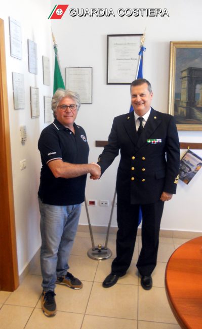 Il nuovo capo del gruppo ormeggiatori di Ancona, Antonio Pignataro ed il comandante del porto di Ancona, l’ammiraglio Francesco Saverio Ferrara