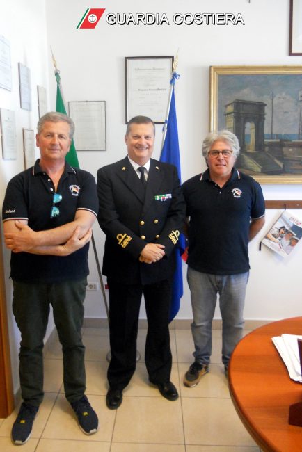 da sinistra il capo gruppo ormeggiatori uscente, Stefano Tricoli, il comandante del porto, l’ammiraglio Francesco Saverio Ferrara ed il nuovo capo degli ormeggiatori di Ancona, Antonio Pignataro