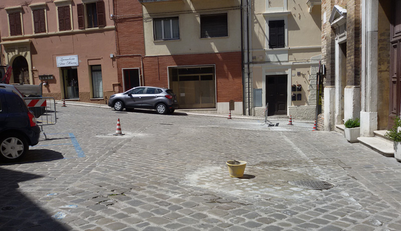 Arriva il Giro d’Italia Elite e partono i lavori ai selciati del centro storico e le asfaltature delle strade interessate dal percorso ciclistico (leggi l’articolo). Per qualche giorno Osimo sarà tutto un cantiere. Da stamattina in centro storico è stata chiusa via Matteotti per la sistemazione degli avvallamenti dei sampietrini nell’area di San Marco e a seguire di via Pompeiana e via Antico Pomerio. Durante la chiusura delle strade, via Campana sarà a doppio senso di circolazione.