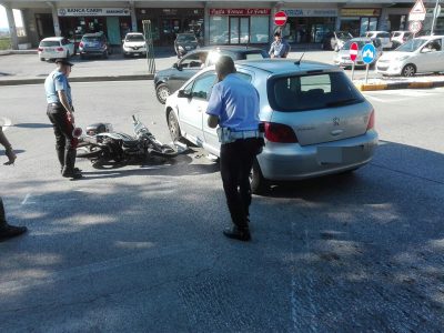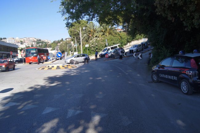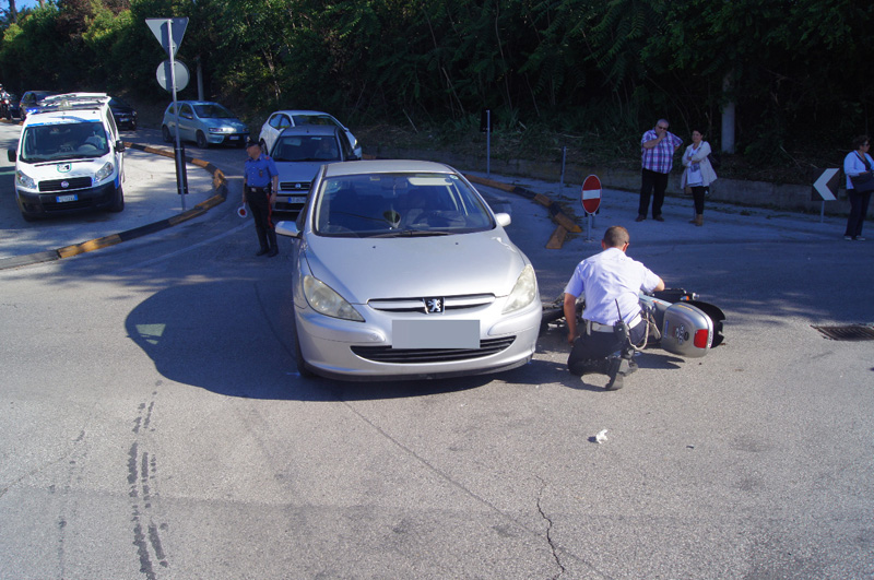 Caos traffico nell’immediata periferia di Osimo, stamattina, per un incidente stradale tra uno scooter e un’auto, avvenuto alla rotatoria all’incrocio tra via Guazzatore e via Marco Polo. Lo scontro si è verificato poco prima delle 8. Lo studente osimano di 17 anni, G.S, sbalzato a terra al sellino dopo l’impatto con una Peugeot condotta da S.V., tarantino di 50 anni, è stato accompagnato al pronto soccorso dell’ospedale di Osimo per accertamenti dai suoi stessi genitori.
