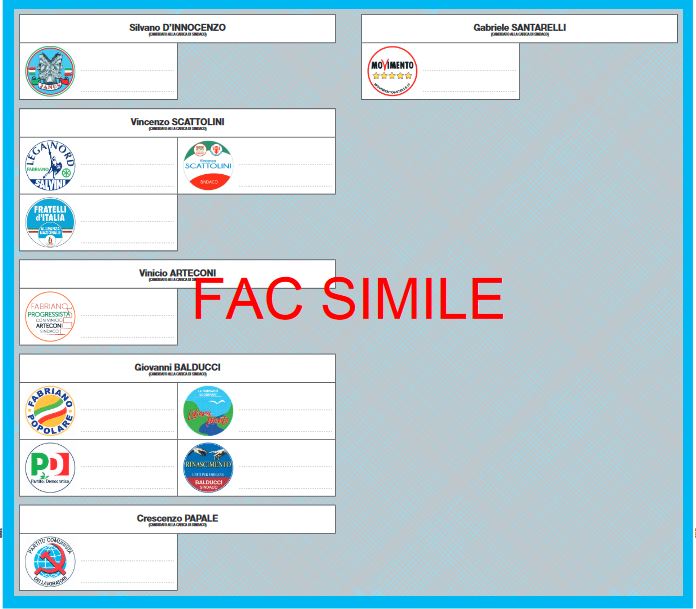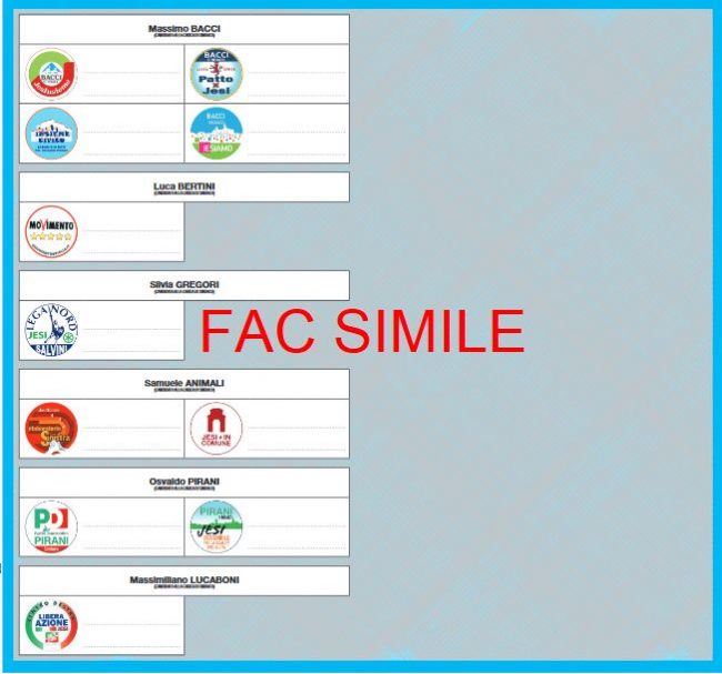 Elezioni amministrative dell’11 giugno, la prefettura ha pubblicato i fac simile delle schede elettorali su cui i cittadini dovranno esprimere la propria perferenza per il candidato sindaco e per il candidato al Consiglio comunale. Ecco allora come compariranno i candidati sulle schede nei 5 Comuni al voto nella provincia: Jesi, Fabriano, Offagna, Rosora e Corinaldo