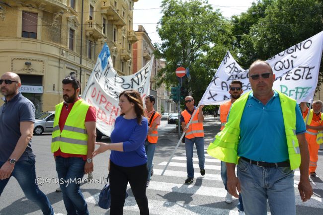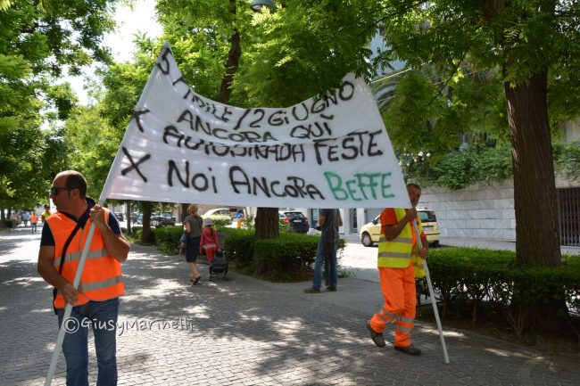 I lavoratori della Baldini in protesta, fermati al viale della Vittoria, lontani dalle Festa del 2 giungo