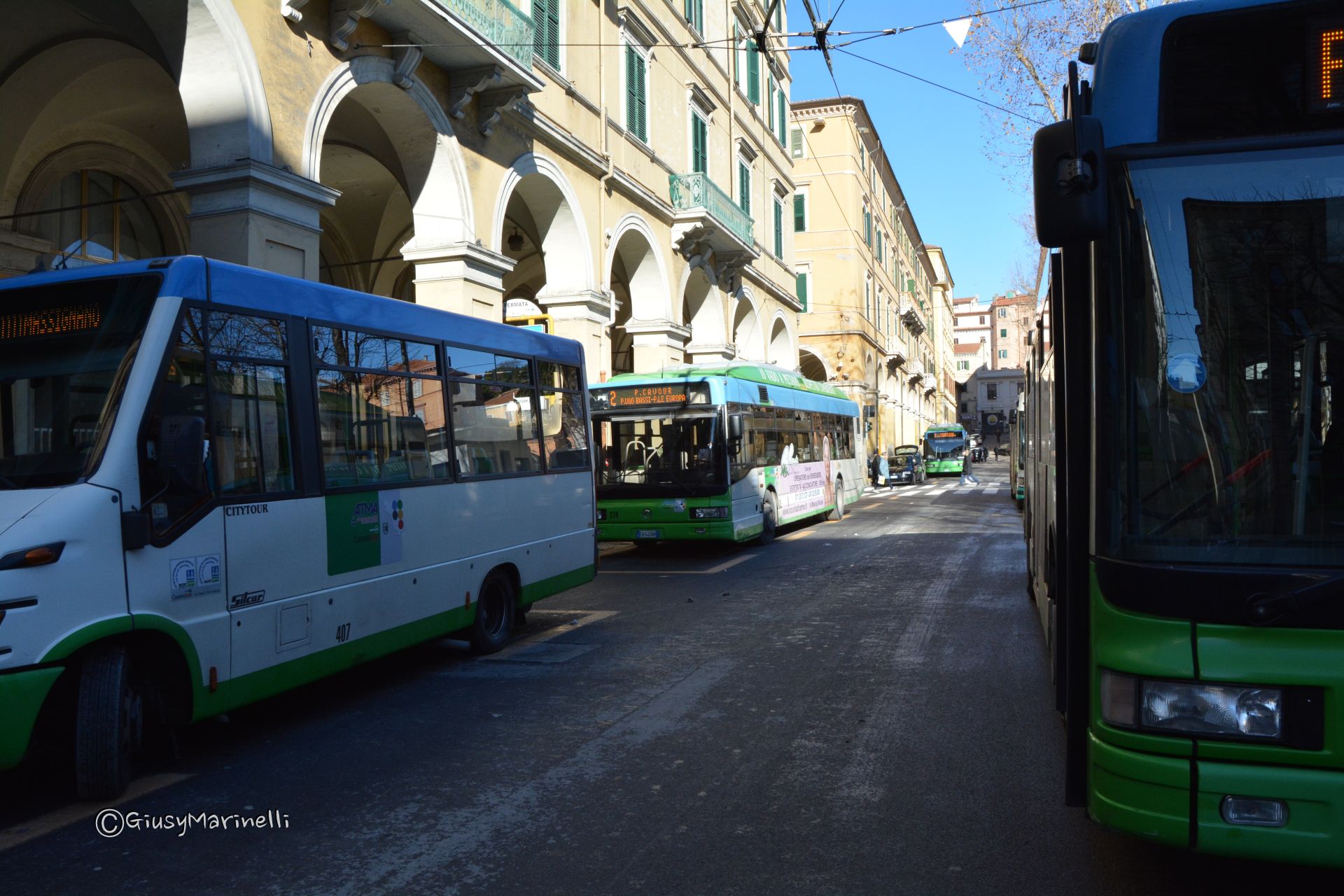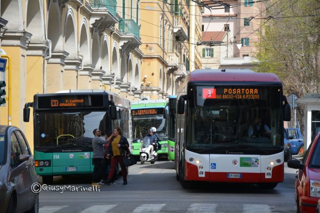 Già, gli autobus e la logistica “viabilità – fermate”: loro tra i principali sospetti fra le fonti iper inquinanti, se si leggono le pagine dell’articolata denuncia, messa a punto e presentata da uno dei tanti studi professionali (tipo commercialisti, medici, legali) che si affacciano sulla statua del conte Camillo Benso. E su invisibili ma dannosissime micro particelle di PM10 (le famigerate polveri sottili), di PM2 (ancora più microscopiche), di ossido di carbonio e ossido di azoto, di benzene. E cioè i composti prodotti in genere dai gas di scarico frutto dei processi di combustione di veicoli a motore e impianti di riscaldamento. L’Arpam, come autorità di polizia giudiziaria incaricata dal pm, starebbe per inviargli un primo bilancio semestrale dei monitoraggi mirati sule citate sostanze chimiche (con report giornalieri e mensili, indicativi di medie e picchi). Naturale che ci sia molta attesa, in un clima di preoccupazione, sugli esiti, anche parziali, dei rilievi. Per vari motivi. Piazza Cavour è stata scelta dall’Arpam in modo mirato, su richiesta del pm, perché è in una posizione molto bassa rispetto al livello medio sul mare della città, tale da favorire l’accumularsi di sostanze inquinanti oltre i livelli di guardia. Nelle zone contigue esistono le condizioni perché il fenomeno nocivo si verifichi: l’indotto in atmosfera degli intensissimi flussi di traffico veicolare delle vie Giannelli, Vecchini, Frediani, Palestro e Matteotti, oltre a piazza Pertini col suo maxiparcheggio al coperto; la forte antropizzazione legata all’alto tasso di residenzialità privata, di uffici pubblici e attività commerciali, con conseguente elevata operatività di sistemi di condizionamento e riscaldamento dell’aria; la presenza sui quattro lati della piazza di punti di fermata da transito, di soste da capolinea e tecniche di bus (linee urbane ed extraurbane), come segnalato nell’esposto.