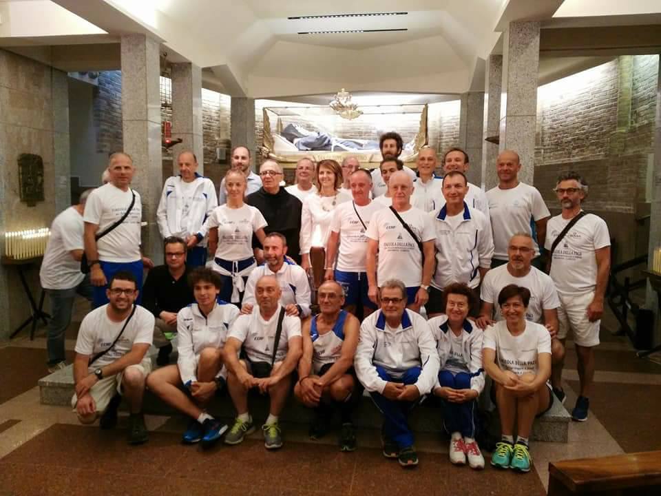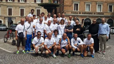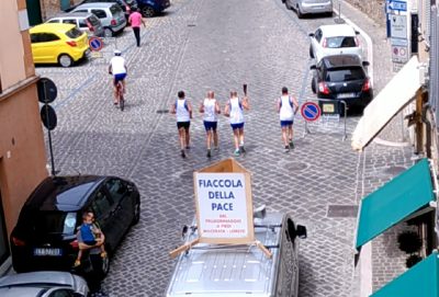 Accaldati ma sorridenti, sono arrivati ad Osimo stamattina alle 11.45, i 20 tedofori della Fiaccola della Pace partiti mercoledì scorso da Città del Vaticano dopo la benedizione di Papa Francesco, e sono passati per le aree del sisma. Un viaggio lungo 3 giorni di marcia per 300 chilometri percorsi in staffetta ogni 45 minuti. Al accogliere questo simbolo di pace che dal 1997 illumina il percorso dei pellegrini in cammino da Macerata a Loreto nella ormai tradizionale marcia in notturna, i podisti del gruppo osimano Braccacini, la presidente del consiglio comunale Paola Andreoni e l’assessore allo sport Alex Andreoli.