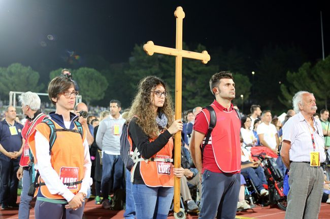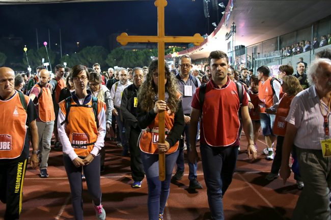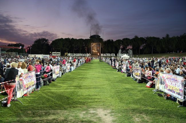 La partenza del pellegrinaggio dallo stadio Helvia Recina