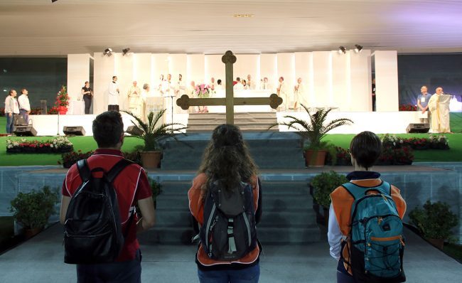 A celebrare la messa con un piacevole accento americano il cardinale Kevin Farrell che prima della celebrazione ha detto: «La solitudine, rappresentata dal nostro telefonino. L’uomo non è fatto per essere solo, il pellegrinaggio è fratellanza». Nella sua omelia ha parlato del pellegrinaggio e dello stare fianco a fianco come di una medicina spirituale: «A volte nella vita ci capita di essere determinati e di avere obiettivi chiari, altre volte siamo smarriti, avanziamo senza meta. Forse partirete con la mestizia nel cuore, con la mente affollata di pensieri negativi, ma lo stare insieme fianco a fianco vi aiuterà». Poi il suo appello ai giovani: « Nonostante i vostri tradimenti, Gesù non vi rifiuta l’amicizia. Anzi lui è l’amico fedele, ha il potere di rendere anche voi fedeli».