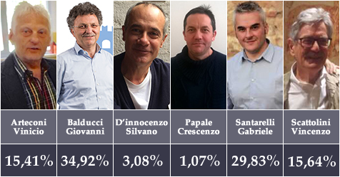 A chiudere Silvano D’Innocenzo della Lista Janus con 427 voti, pari al 3,088%. E, il candidato del partito Comunista dei Lavoratori, Crescenzo Papale, che ha ottenuto 149 voti, pari al 1,07%.