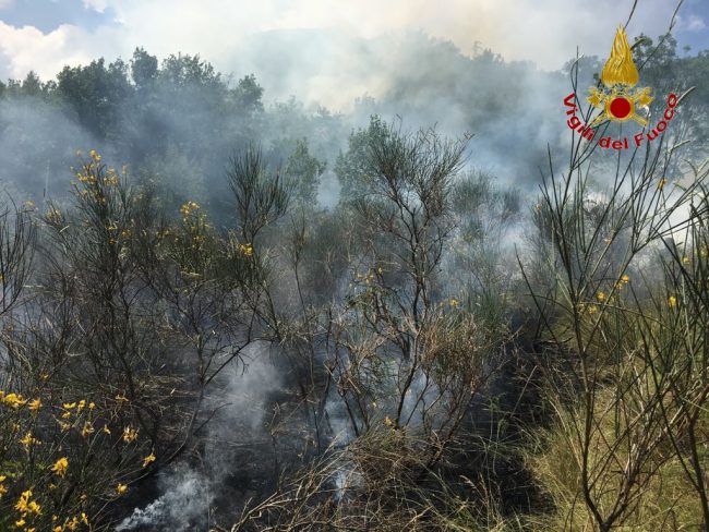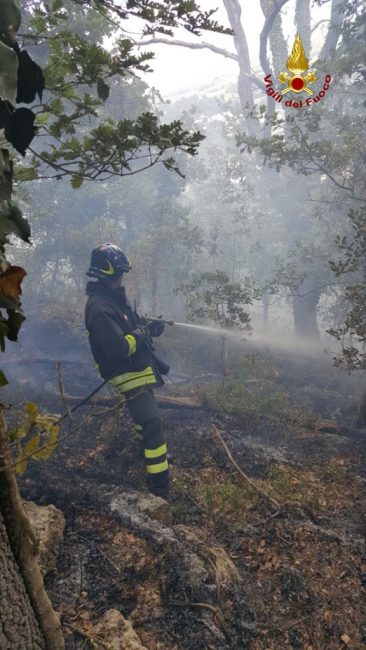 Fuoco sul costone del monte Murano nel parco della Gola della Rossa. Sei squadre dei vigili del fuoco dei distaccamenti di Arcevia, Jesi e Fabriano hanno dovuto combattare con le fiamme per oltre 4 ore, dalle 15 alle 19.30 circa, per domare l’incendio divampato nella zona boscosa. Da accertare le cause dell’innesco, il fuoco è divampato velocemente a causa del sottobosco inaridito dalle alte temperature. Un aiuto è arrivato dal vento, che non ha alimentato le fiamme. L’intervento ha mandato in fumo circa 3 ettari di bosco. Le operazioni di spegnimento del fuoco sono state particolarmente difficili per la zona impervia e irraggiungibile da terra. Sono impegnati nelle operazioni circa 20 uomini con 5 mezzi antincendio dai comandi di Ancona e Macerata. Si è alzato in volo anche l’elicottero da Pescara, che ha aiutato gli uomini a terra con 10 lanci di acqua dal cielo. Durante le operazioni sono state sospese le linee elettriche per permettere i lanci di acqua. L’elicottero ha fatto rientro solo attorno alle 18.30. Sul posto si è intrattenuta a lungo una squadra per presidiare la zona.