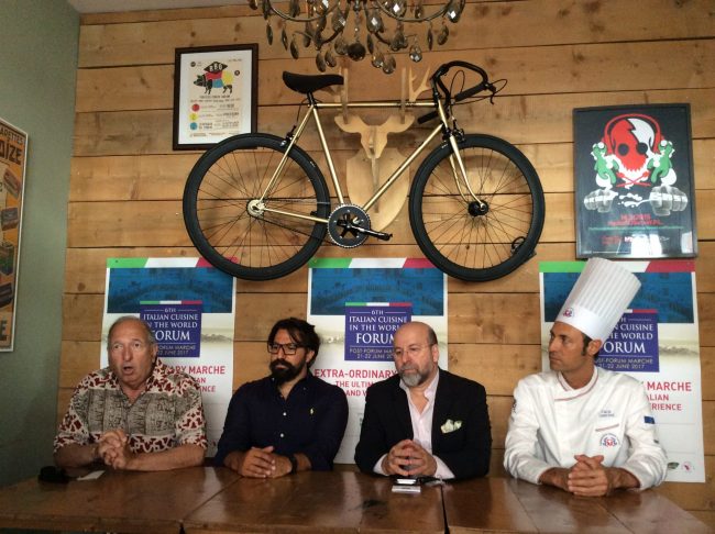 Da sinistra Angelo Serri, direttore di Tipicità, Marco Virgili di Wec, Rosario Scarpato, direttore di Icw e Luca santini, presidente dell’Unione cuochi delle Marche