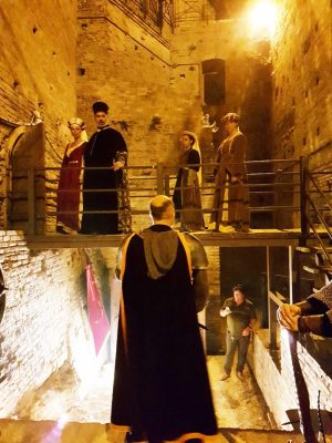 Rocca di Offagna, un momento dello spettacolo di ieri sera per presentare l’edizione 2017 delle Feste Medievali, la numero 30