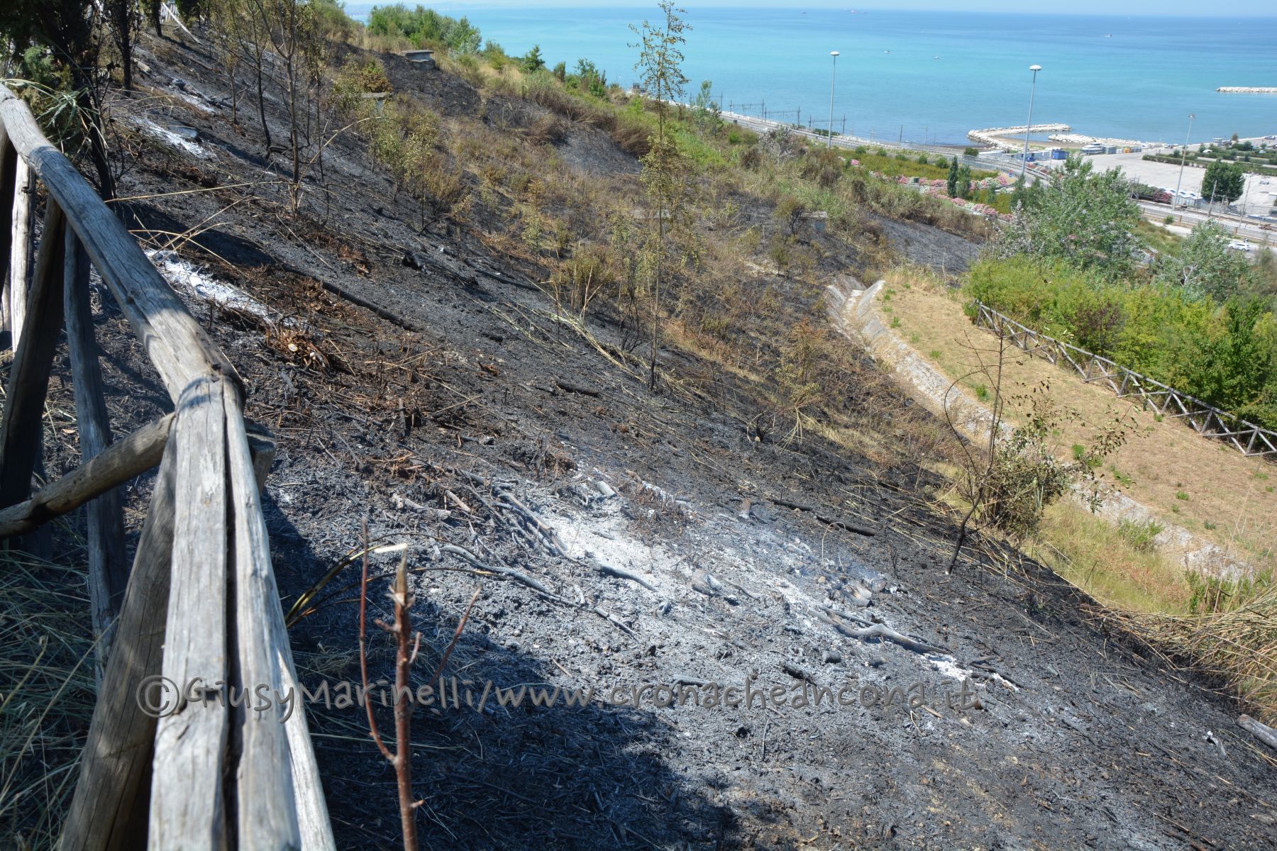 Le fiamme tra Posatora e Palombella