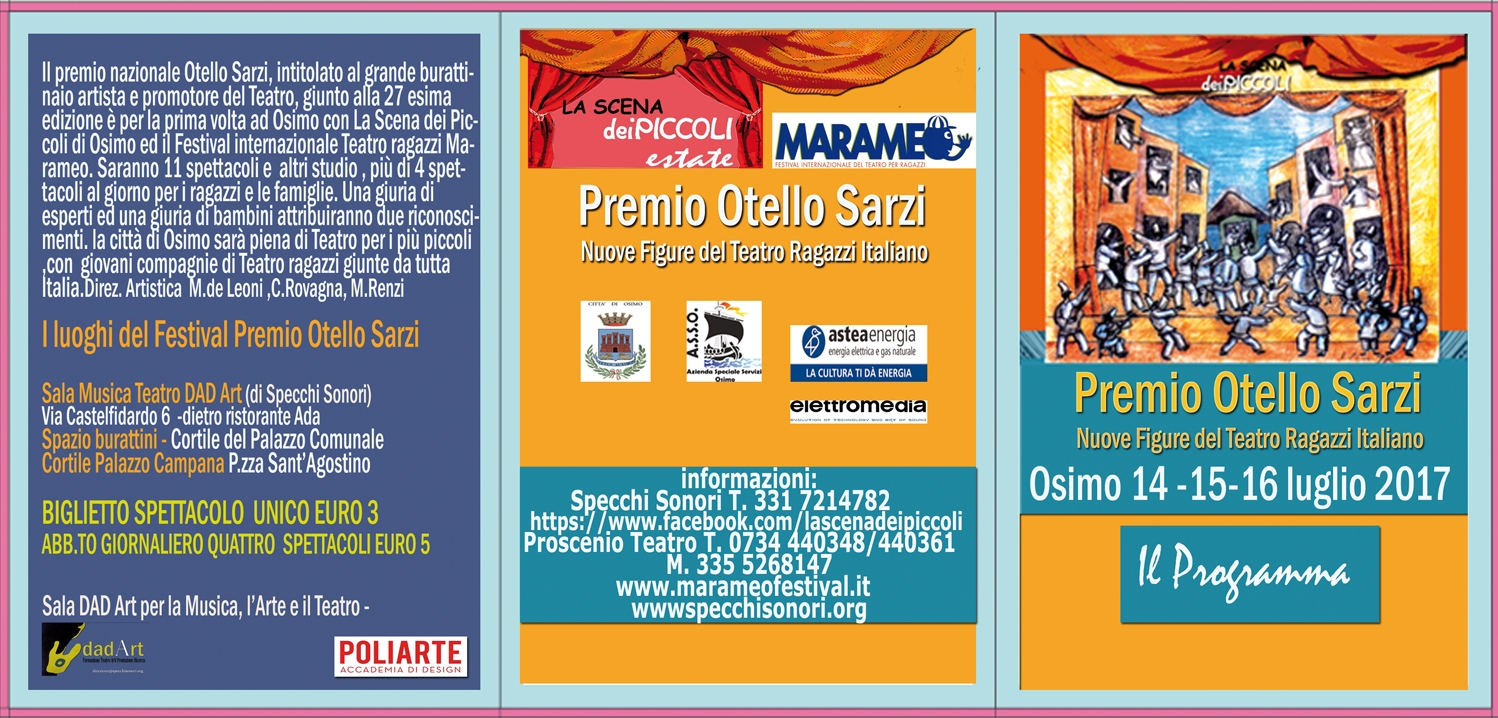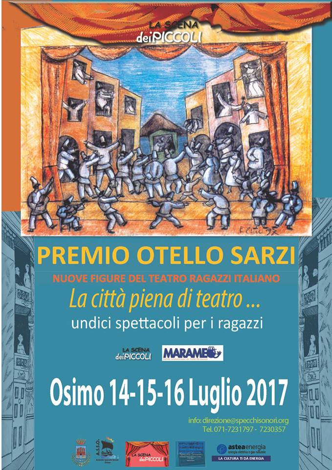 “Spettacoli studiati e concepiti come strumenti di crescita ed educazione per i ragazzi – ha detto il vice sindaco Mauro Pellegrini – l’amministrazione comunale è lieta di sostenere il teatro dei ragazzi in tutte le sue forme. Osimo si propone un po’ come la Sanremo del teatro dei ragazzi perchè hanno partecipato 51 compagnie da tutta Italia alle selezioni per entrare nella locandina del premio e solo 19 ce l’hanno fatta”. Presenti all’incontro stampa Claudio Rovagna e la professoressa Marianna De Leoni, dell’Associazione Specchi Sonori, ideatori nel 2014 de “La Scena dei Piccoli”, un progetto teatrale nato con l’obiettivo di diventare un osservatorio delle diverse tecniche e dei linguaggi che vengono utilizzati negli spettacoli teatrali dedicati ai bambini. Marco Renzi, direttore di Proscenio e del Festival Internazionale Marameo, anch’egli presente alla conferenza, ha voluto ricordare la figura di Otello Sarzi: “Un grande burattinaio che con il suo entusiasmo ha contribuito più di ogni altro a diffondere questo genere teatrale; il premio in suo onore, istituito nel 1995 quando era ancora in vita, era stato pensato per sostenere le giovani compagnie teatrali, una vetrina per farsi conoscere e per confrontarsi davanti ad una giuria qualificata”.