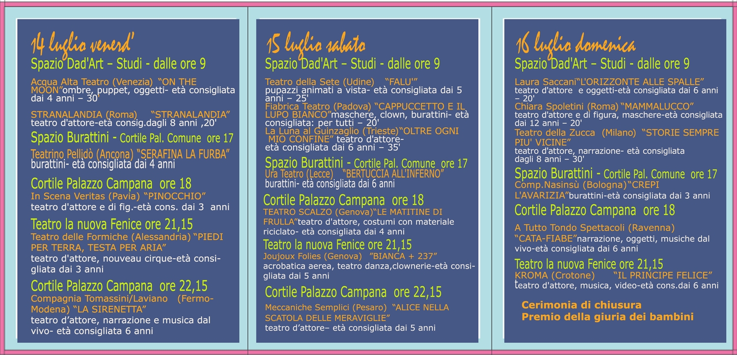L’altro prestigioso appuntamento dell’estate senza testa oltre alla Coppa del mondo della Fisarmonica (leggi l’articolo), la Coppa Pianisti, il ritorno di Vittorio Sgarbi (leggi l’articolo) sarà poi dedicato ai più piccoli e alle famiglie. La presentazione questa mattina in una conferenza stampa nella Sala Vivarini in municipio. Il “Premio Nazionale Otello Sarzi”, intitolato al grande burattinaio di Reggio Emilia, per la prima volta ad Osimo, con “La Scena dei Piccoli” ed il “Festival Internazionale Teatro Ragazzi Marameo”. Ricchissimo il programma degli eventi che si svolgeranno nelle giornate dei prossimi 14-15-16 luglio: sono 19 le compagnie teatrali provenienti da tutta Italia che si esibiranno presso il Teatro La Nuova Fenice, il cortile di Palazzo Campana e l’atrio del palazzo comunale. Questi i componenti della giuria: Isabelle Roth, Marco Renzi, Marianna De Leoni, Anna Vellaccio, Claudio Rovagna, Renata Rebeschini, Mario Bianchi. Spazio anche alla “Giuria dei Bambini”, composta da 30 scolari delle III e V Primarie dell’Istituto Comprensivo Bruno da Osimo che affiancheranno gli esperti. Il costo del biglietto è ultra popolare: 3 euro per il singolo spettacolo, 5 per assistere al pacchetto dei 4 spettacoli proposti nel corso dell’intera giornata.