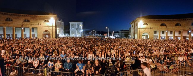 SENIGALLIA - Oltre 8 mila persone per cantare "Occidentali's karma" e le altre hit che hanno consacrato l'artista. Convice la nuova formula del CaterRaduno "Tutto in tre notti". I saluti con Finardi, la Banda Osiris e Filippo Solibello