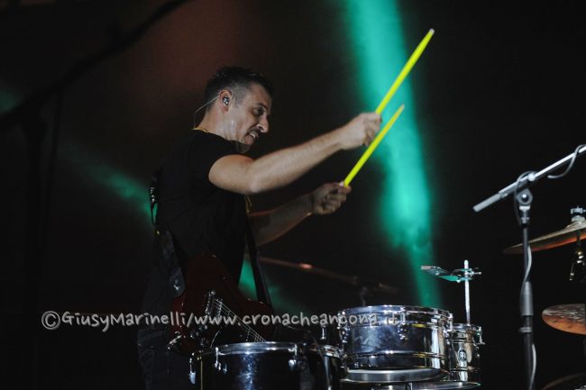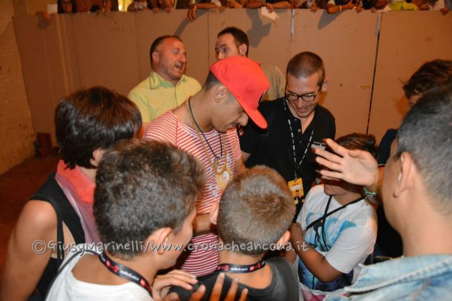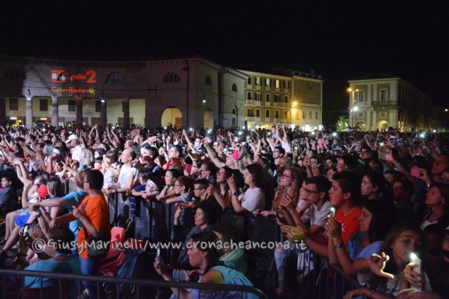 Il Foro Annonario esplode per il trionfatore di Sanremo, Francesco Gabbani e la sua Occidentali’s Karma con cui il cantautore ha sbancato radio e vendite e con la quale chiude un’edizione 2017 del CaterRaduno dai grandi numeri. Piazza e lungo fiume a squarciagola per il tormentone sanremese, ma anche per il nuovo singolo già destinato a scalare le classifiche “Estate” e la hit che ha portato Gabbani al successo “Amen”. Alla batteria, il fratello Filippo, tra gli autori dell’orecchiabile ritornello “la scimmia nuda balla”, per un’ora e mezzo di spettacolo. Seconda tappa marchigiana da sold out (si stimano 8 mila presenze ieri) per l’artista toscano, partito con la data zero del suo tour da Fermo.
