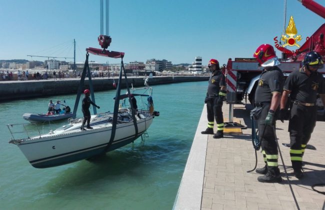 SENIGALLIA – L’imbarcazione è stata recuperata dai sommozzatori del distaccamento di Ancona e con l’autogru