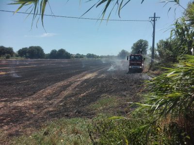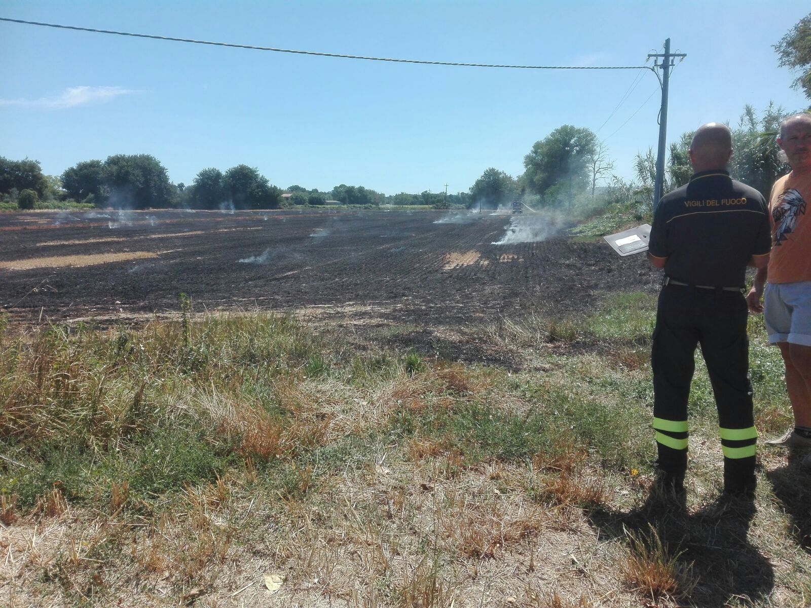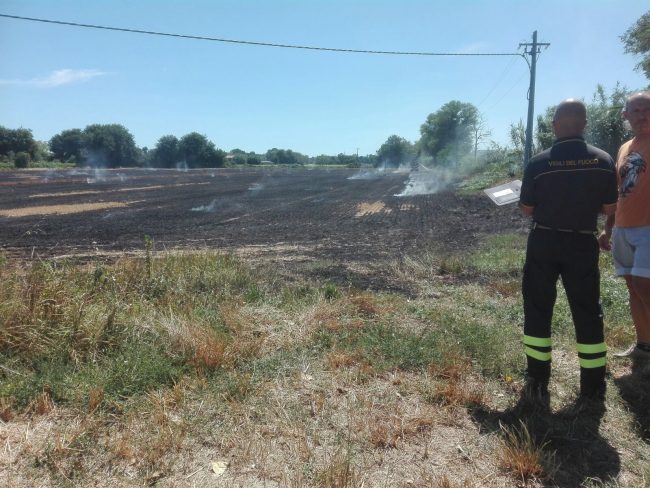 Ancora un incendio a Campocavallo, nel campo adiacente alla pista ciclabile (leggi l’articolo). Stamattina sono andati in fumo 2,2 ettari di sterpaglie. Per circoscrivere le fiamme è stato necessario l’intervento di 3 mezzi dei vigili del fuoco di Osimo e 2 ore di lavoro, mentre una pattuglia della polizia locale ha tenuto sotto controllo la viabilità. Non ci sono feriti. La segnalazione al 115, stamatina,  è partita da un cittadino che passeggiava lungo la pista ciclabile. Non ci sono prove concrete ma c’è il sospetto che ad accendere il fuoco sia stato un mozzicone di sigaretta lanciato al margine del campo con il grano appena tagliato, che nemmeno la pioggia di stanotte ha messo in sicurezza.