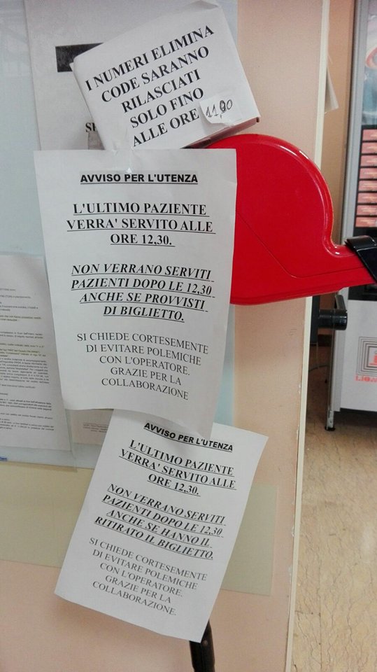 Disservizi e file interminabili al Cup di piazza del Comune, l’onorevole Luigi Giacco e Michelangelo Tumini di Sinistra Italiana denunciano la “politica scientifica della malasanità” e il rischio chiusura del Poliambulatorio. L’ultimo episodio stamattina, alla riapertura del servizio dopo due giorni di stop dovuti alla malattia dell’unico dipendente rimasto in servizio allo sportello al pubblico. “Due dipendenti sono andati in pensione recentemente ed un altro responsabile ci andrà a breve e nessuna politica del personale socio sanitario ha previsto le loro sostituzioni. Più chiaro di così” scrivono gli esponenti della Valmusone di Sinistra Italiana, riferendo dell’ultima giornata di disagi. “Oltre cento persone hanno constatato il funzionamento scientifico della malasanità – raccontano Giacco e Tumini -. Dopo due giorni di chiusura del servizio ticket e servizi amministrativi dell’Asur (lunedì e martedì), a causa della malattia dell’unico dipendente rimasto in servizio, dalle ore 8 del mattino, come da orario previsto oggi giovedì 3 agosto, decine e decine di cittadini hanno preso regolarmente il proprio numero e hanno iniziato la fila. Alle ore 9,30 già i numeri previsti erano esauriti e molti cittadini hanno iniziato una coda autogestita nella speranza di ricevere il servizio entro le ore 12,30 previste”. Una speranza inutile, vista la presenza dell’unico impiegato allo sportello. Dopo ore di attesa, alcuni cittadini hanno iniziato a chiedere spiegazioni, prima ai responsabili del Poliambulatorio, poi al sindaco Pugnaloni, quindi anche al dirigente dell’area vasta Maurizio Bevilacqua. “Risultato? Si è capito che i cittadini di Osimo, dopo la perdita dei servizi ospedalieri, dopo la mancata qualificazione dei servizi del pronto soccorso, dovranno subire anche la perdita dei servizi del Poliambulatorio” concludono Giacco e Tumini. “Il Partito della Sinistra Italiana, attivo nella Valmusone e a livello regionale continuerà a restare a fianco dei cittadini per denunciare tale scempio del Sistema Sanitario Nazionale perpetrato da una politica sanitaria regionale che, senza offrire alternative adeguate di servizi, pianifica ed esegue, nel silenzio anche degli stessi cittadini osimani fin troppo pazienti silenziosi, la chiusura non solo dell’ospedale di rete, ma anche dei servizi ambulatoriali e territoriali. Grazie Ceriscioli”.