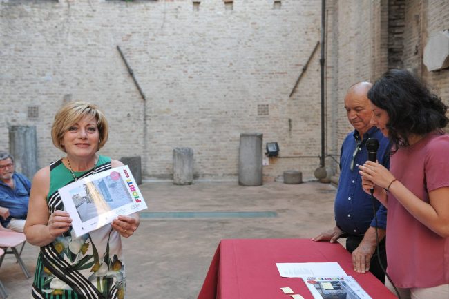 Concorso ‘Balconi Fioriti’, Adriana Tordini, una delle commercianti amiche di Marina, riceve dall’assessore Michela Glorio il premio postumo per il negozio la ‘Bomboniera di Marina’