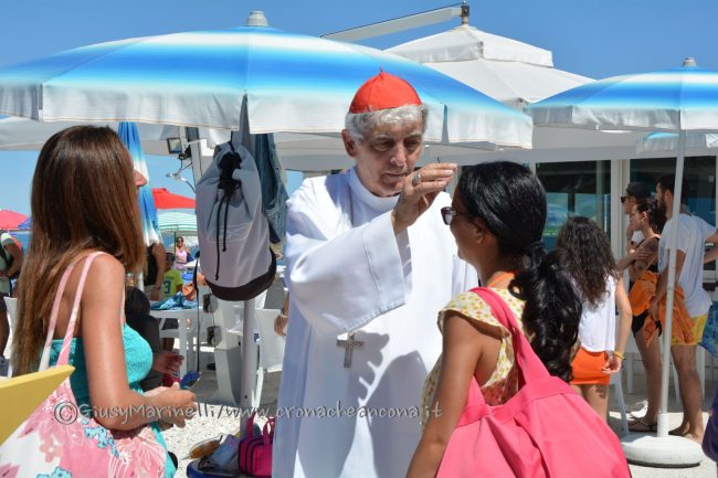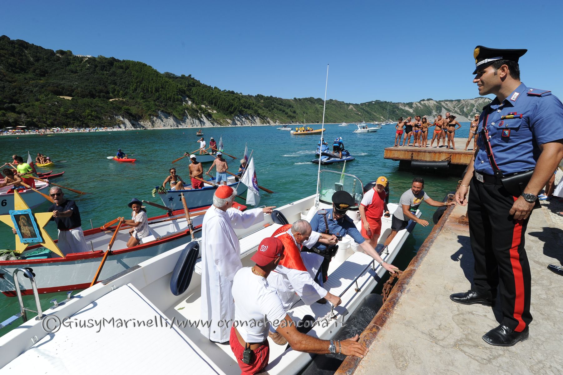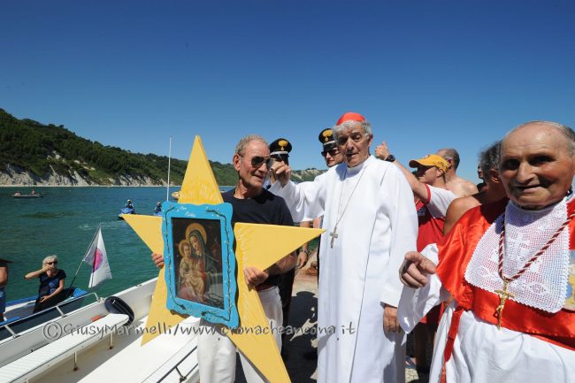 La benedizione delle imbarcazioni a Portonovo con il cardinale Edoardo Menichelli dell’estate 2016 (foto Giusy Marinelli)