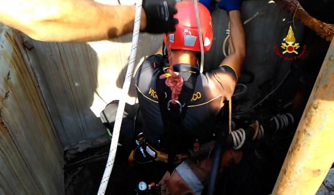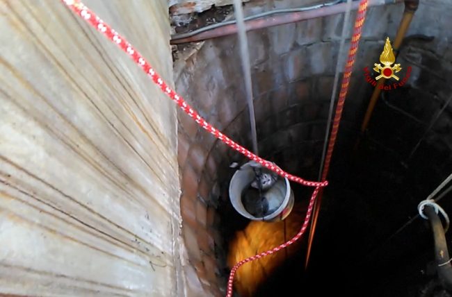 Un equipaggio del distaccamento di Jesi, poco dopo è arrivato sul posto e un vigile del fuoco si è calato con le attrezzature per le tecniche di derivazione speleologica nel pozzo del terreno confinante con quello di proprietà del padrone dell’animale e ha agguantato il gatto. Il soccorritore ha indossato “l’autoprotettore” che consente di respirare aria pulita. Non appena è riaffiorato in superficie dentro il secchio, al micio è tornato il coraggio e con un balzo felino è schizzato via per la campagna.